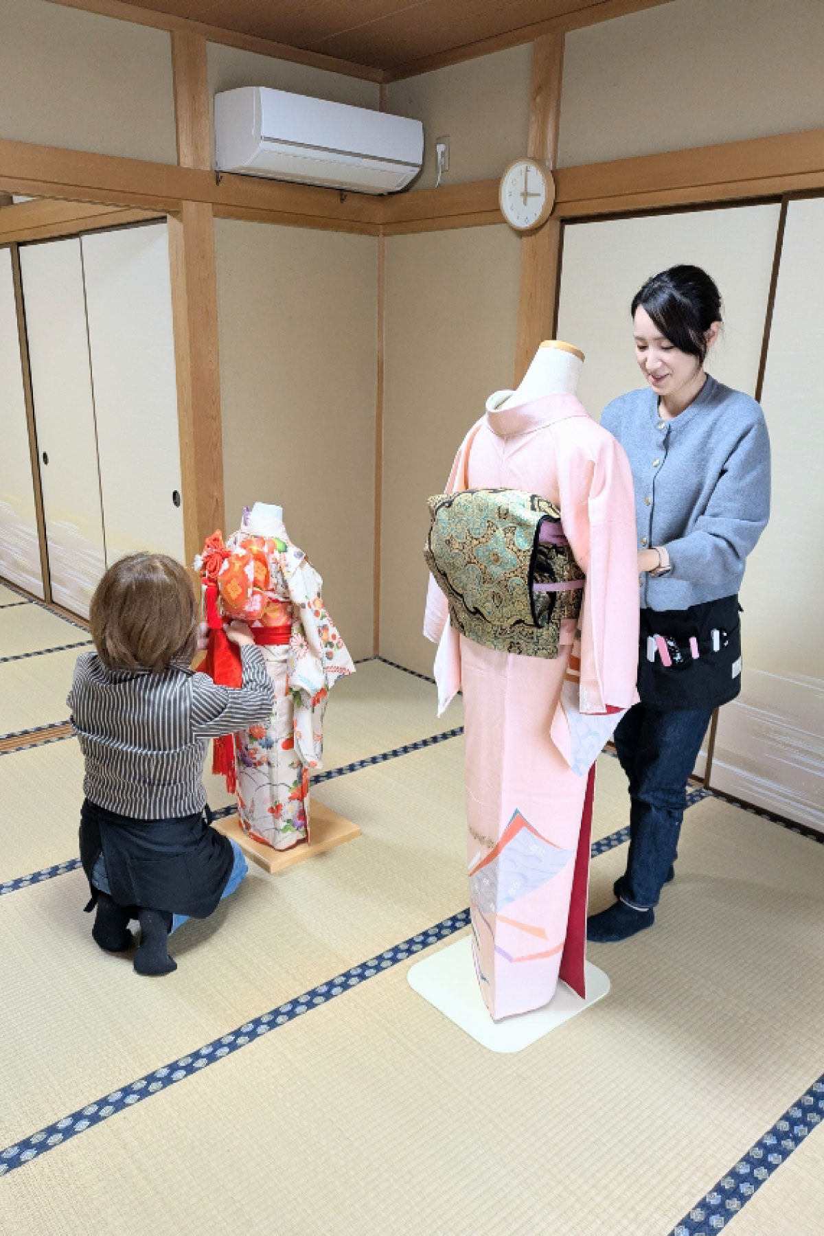 また、お嬢様やお身内の方に着物を着せられるようになりたい方には、自装と平行して他装もお教えいたします。